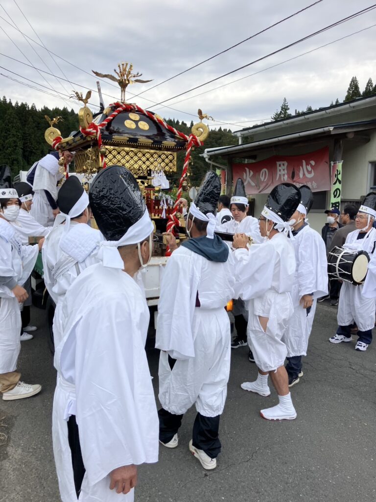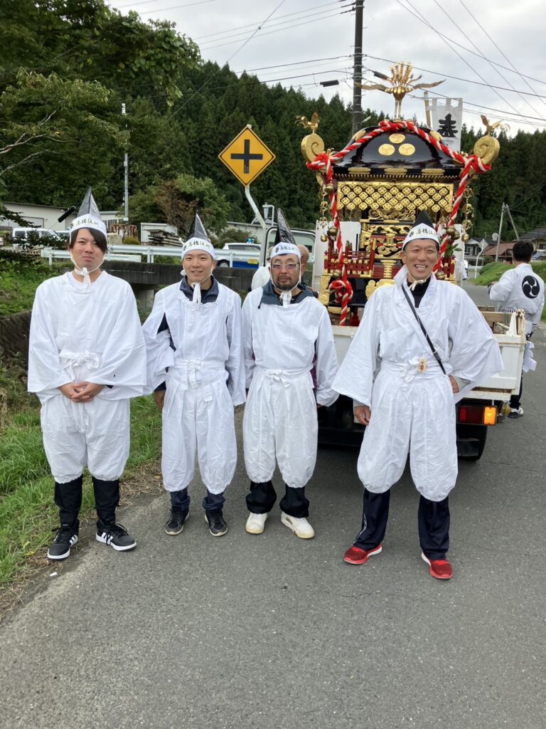 2025/10/22 気仙沼市 八幡神社 神輿渡御祭 ブログ こんにちは、伊藤です(^^)/ 10月19日(日)地域貢献の一環として八幡神社様の神輿渡御祭斎行に当たり 御六尺(神輿の担ぎ手)として弊社から4人、参加させていただきました。 左から、小野寺大輝くん、中島直人くん、伊東政司さん、本多宏治さん お疲れ様でした☆