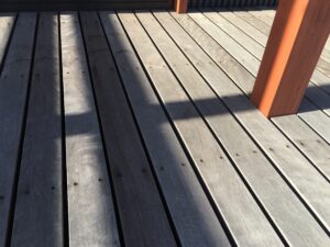 美しき銀灰色(シルバーグレー)への変化: イタウバの最大の魅力は、その「経年変化」にあります。 年月を経るごとに、木の色は落ち着いた渋い**「銀灰色(シルバーグレー)」**へと変化していきます。 これは天然木が自然と調和していく証。時を重ねるほどに建物に馴染み、ヴィンテージのような深い味わいと風格を醸し出してくれます。