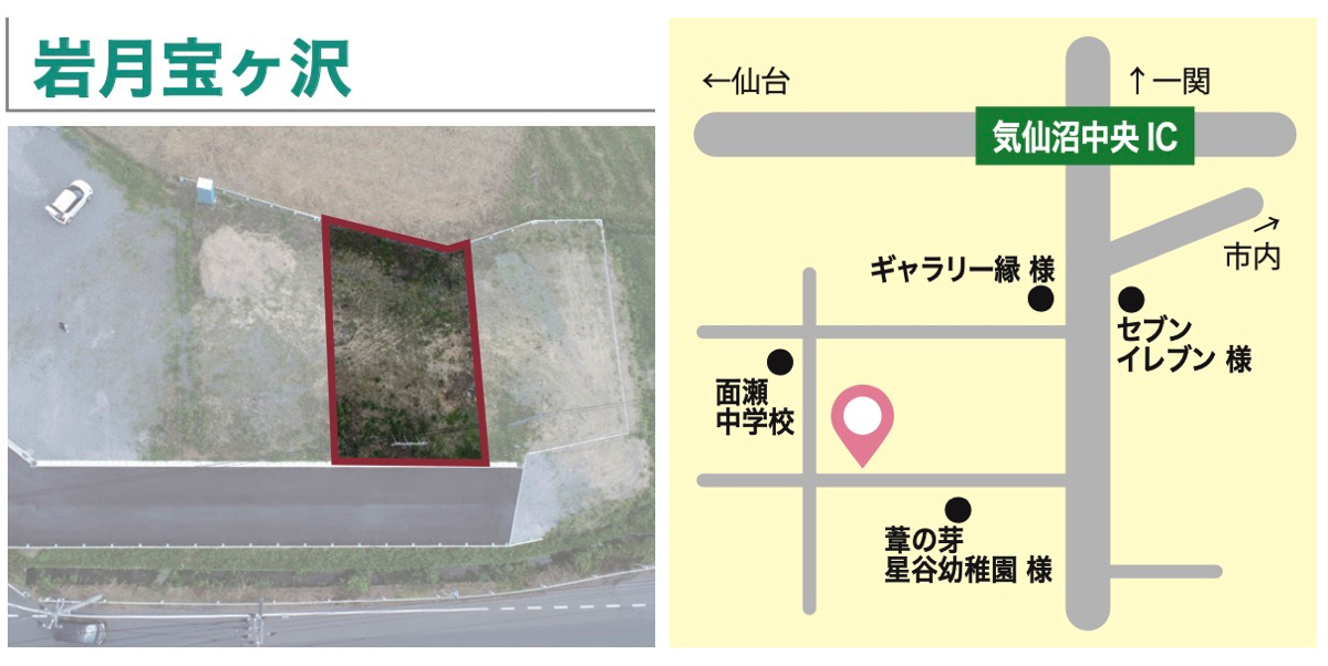 ●所在地:気仙沼市岩月宝ヶ沢250-7 ●交通:(株)ミヤコーバス 岩月バス停より徒歩14分 ●土地面積:213.97m²(64.72坪) ●接道状況:市道幅員5.7m ●設備[水道]宅内に引込済[排水]合併浄化槽による排水可
