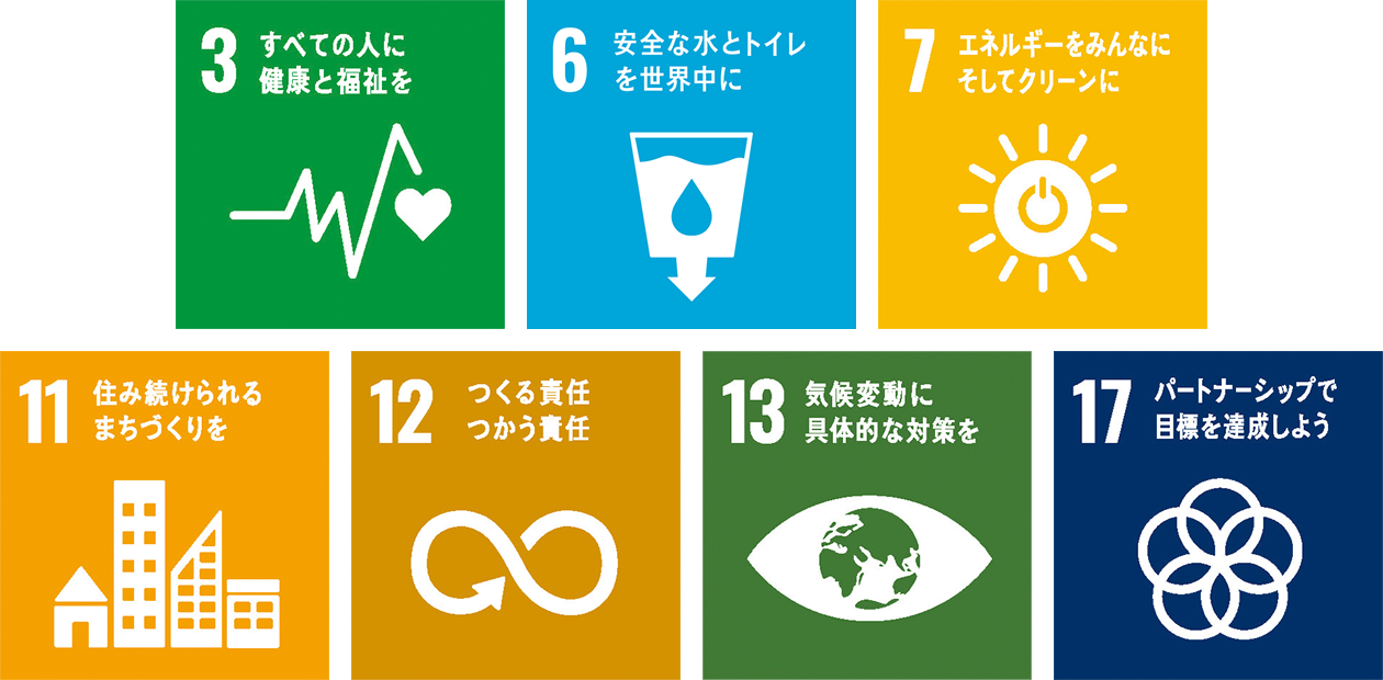 住まいづくりを通じて、7つの項目に貢献する取り組みを行っています。