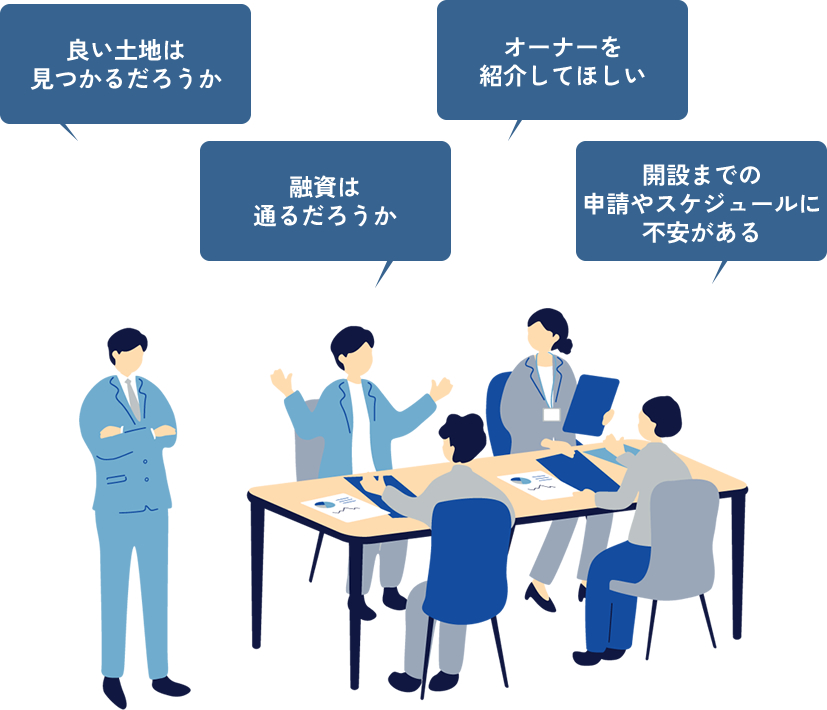 また、銀行融資のサポートも運営事業者様と共に行い、融資を確かなものにします。